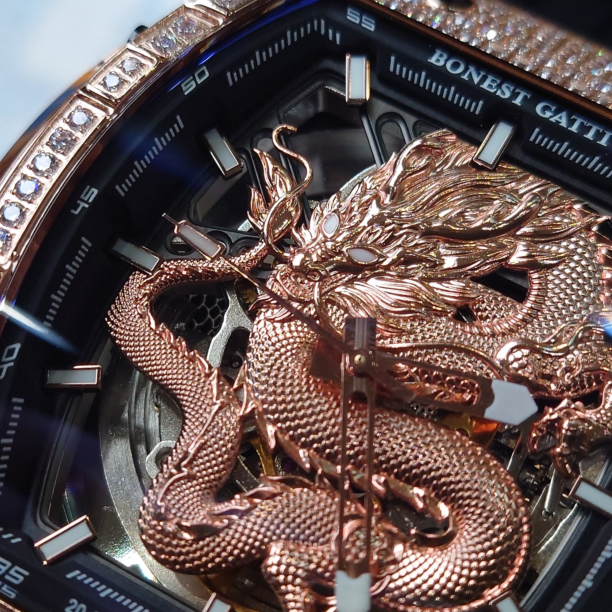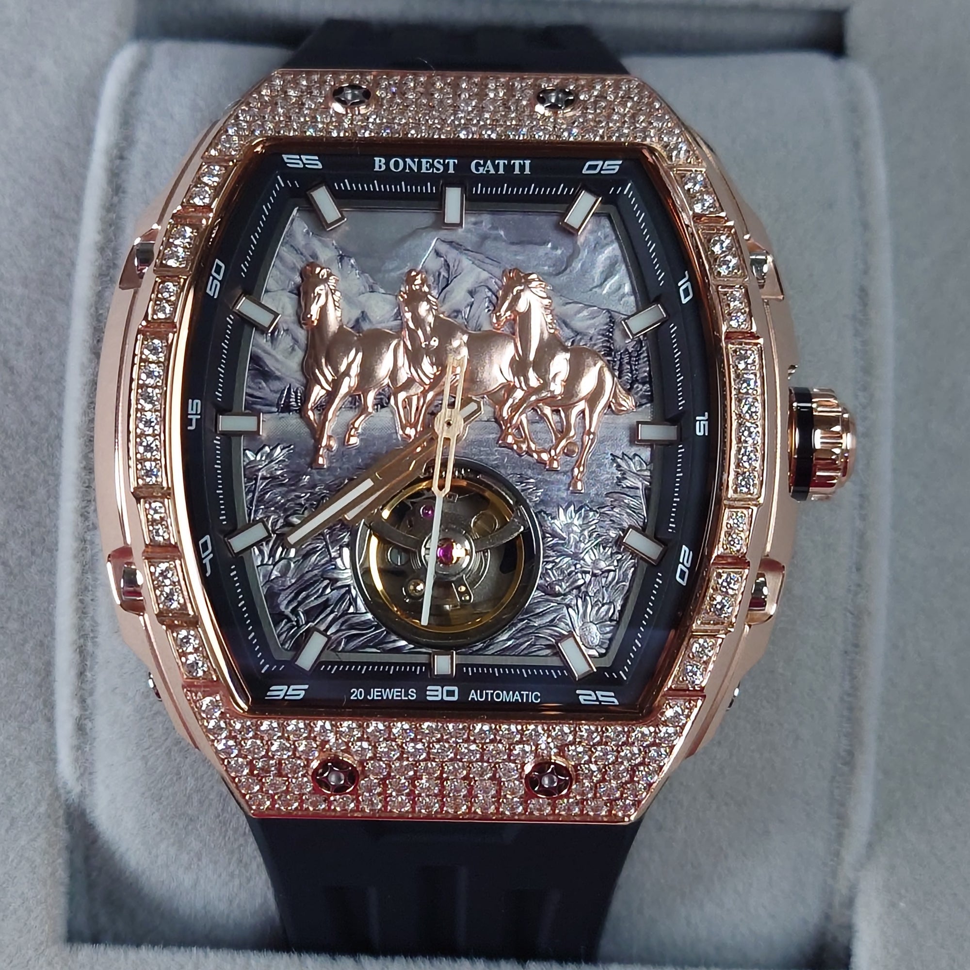Bonest Gatti 酒桶形水晶鏤空自動錶 BG6005-R3