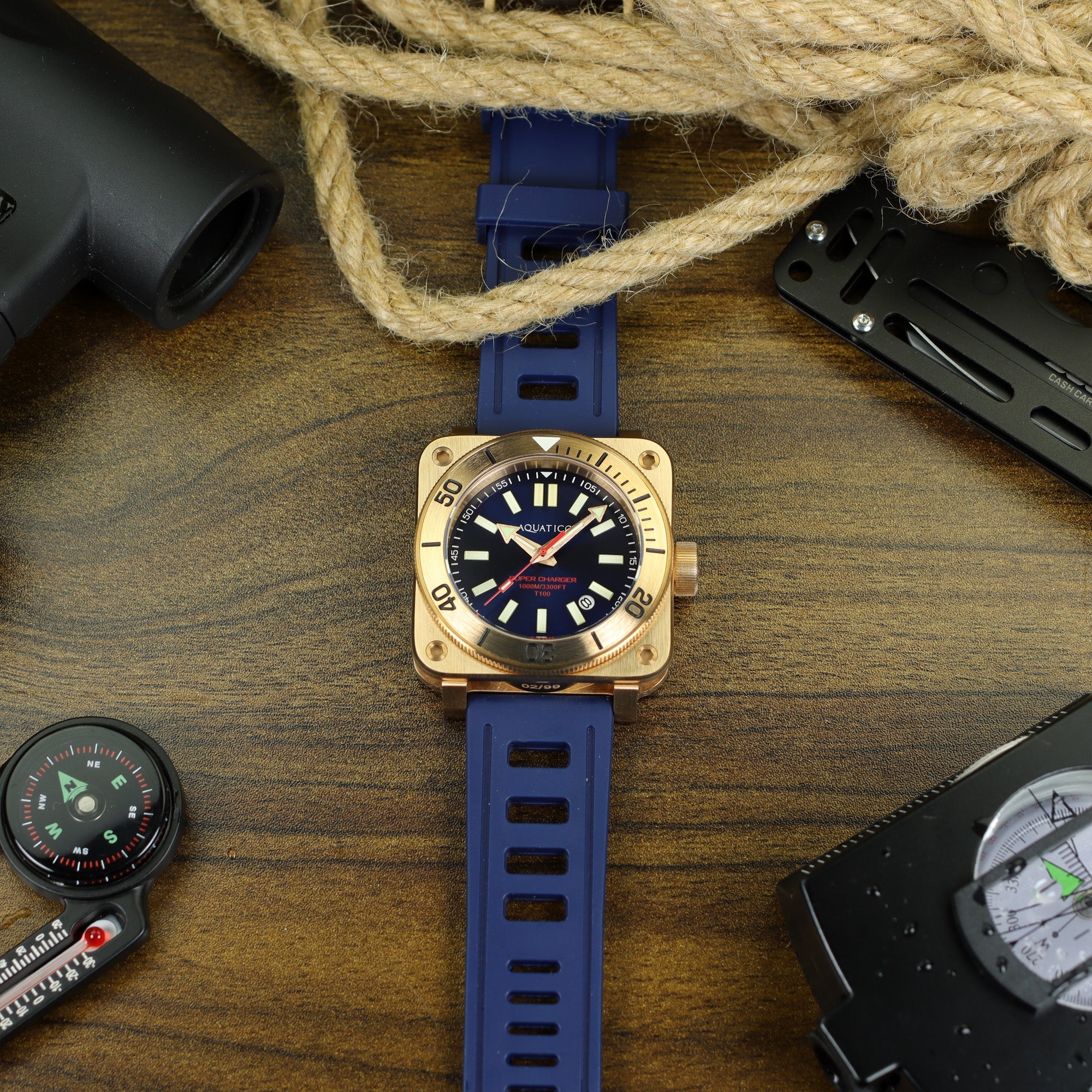 Aquatico Super Charger Bronze Tritium T100氣燈 青銅潛水機械錶 Blue Dial