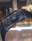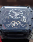 偏心式鏤空盤面:時間顯示盤位於左上方,搭配深藍色刻度圈,在複雜的機械背景中依然能清晰讀時。