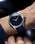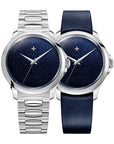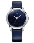 今次Venezianico再度大玩好受歡迎嘅「星塵」錶面 錶面採用藍色砂金石材(Aventurine) 起源可以追溯到17世紀初 歸功於威尼斯玻璃製造商Murano工匠 偶然將銅碎片灑入藍色玻璃漿中 賦予了其優雅而閃閃發亮的反光效果 仿似夜空的閃爍繁星 呢種石英礦物每一片都係獨一無二 間中都會出現喺一啲高檔手錶品牌中 錶底都不忘注入意大利DNA 雕刻了威尼斯救主堂(Basilica del Redentore)圖案 以往配以旭日紋,今次則配以滿天星空 6螺絲底蓋令雕刻圖案保持正中央,更美觀 錶盤係類似Ultrablack 40 但結構上也經過重新設計 厚度從以往的12.6mm減少到11.1mm 新的表冠與較小的表冠保護器設計 更具包圍性的全新凸耳形狀 錶帶呼應返錶面顏色,採用藍色意大利皮革錶帶 弧形固定帶,佩戴起來更貼手舒適